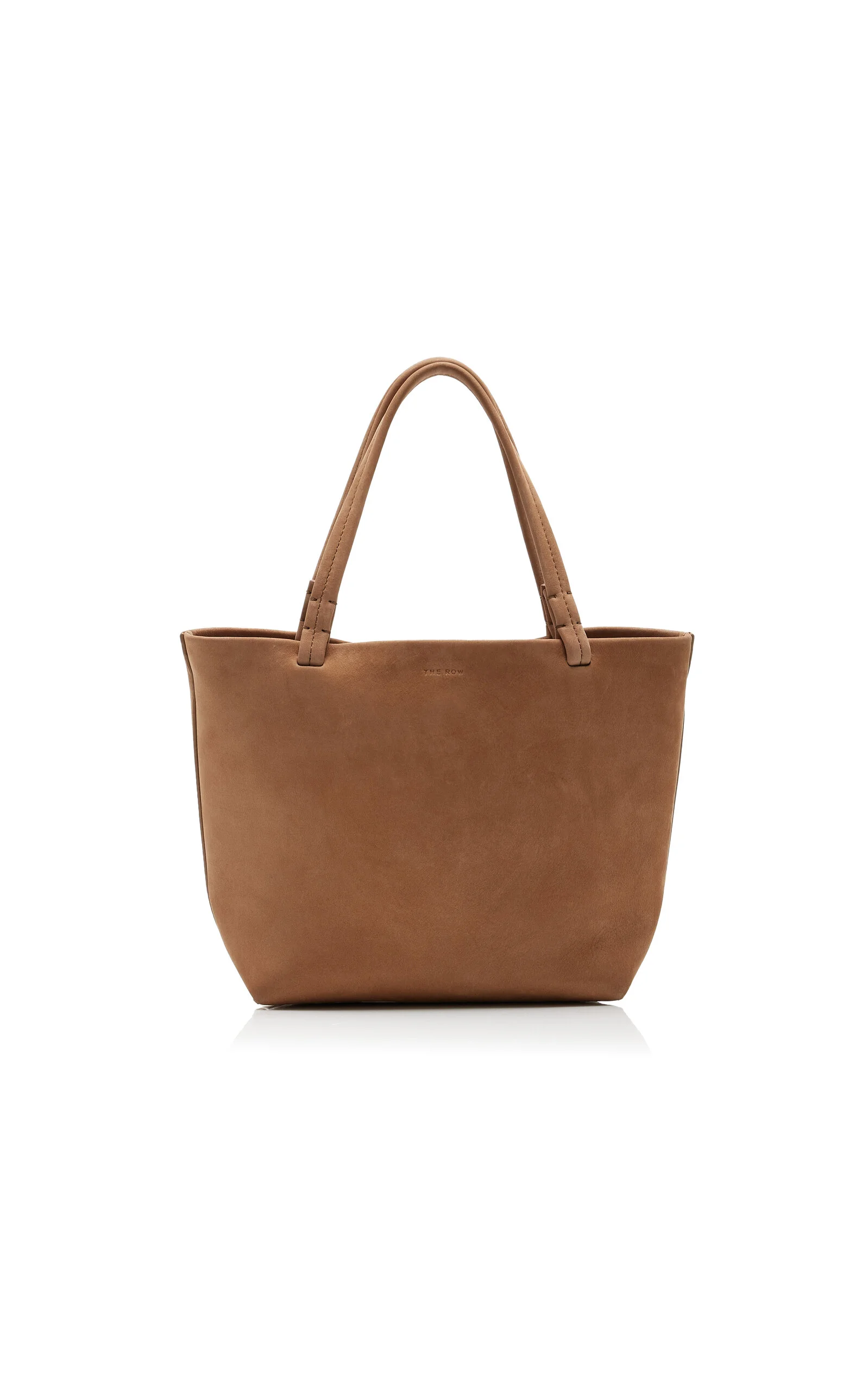With a focus on exceptional fabrics, impeccable details and uncompromising quality, The Row explores the strength of simplistic shapes, resulting in timeless staples with subtle irreverence. This iteration of the coveted 'Park' tote is more compact for day-to-day carrying. Crafted of nubuck suede leather with a detachable shoulder strap, interior toggle closure, and flat handles. PRODUCT DETAILS - Toggle fastening - Composition: Nubuck suede leather - Made in Italy SIZE & FIT - Measures approximately 19 x 18 x 10cm