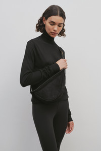 Curved crossbody bag in lightly textured suede with adjustable strap and zipper closure. More information - 4.75 x 13.75 x 7 in. - 100% Leather - Made in Italy - Style: W1197L28BLPL