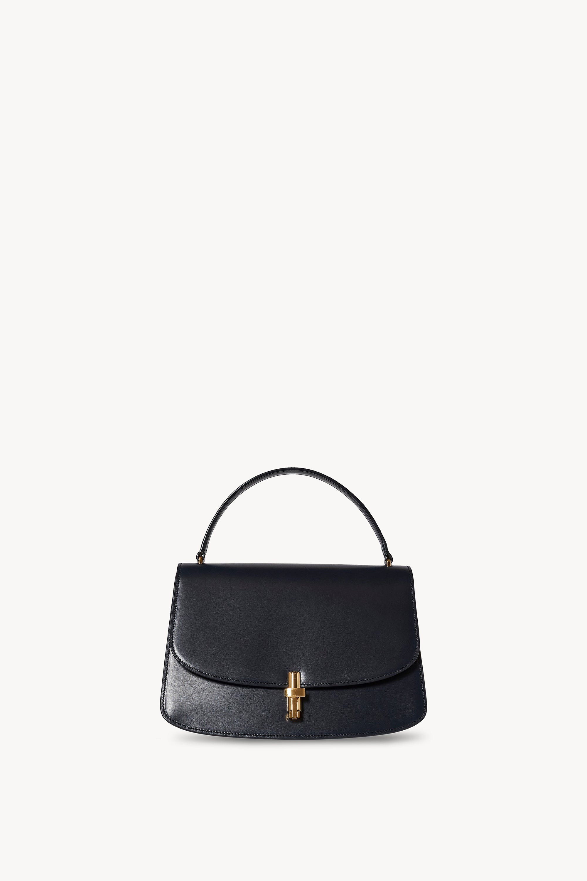 Classic handbag in box calfskin leather with top handle and custom lock closure hardware. More information - 10 x 7 x 4.5 in. - 3.5 in. Handle Drop - Interior Zip Pocket - 100% Box Calf Leather - Leather Lining - Made in Italy - Style: W1446L60BLSG