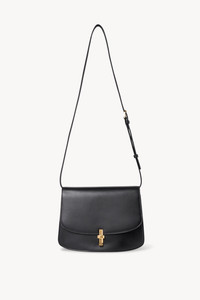 Classic structured handbag in sleek calfskin leather with adjustable shoulder strap and lock closure. More information - 10 x 7 x 4.5 in. - 20 in. Strap Drop - 100% Calfskin Leather - Made in Italy - Style: W1503L60BLSG