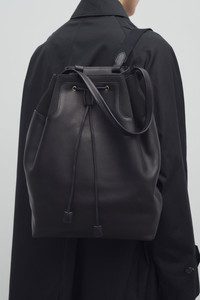 Softly structured backpack in smooth saddle leather with tonal canvas top panel, adjustable shoulder straps, and drawstring closure. More information - 100% Calfskin Leather - Lined in 100% Leather - Made in Italy - Style: W1784W269L72BAG