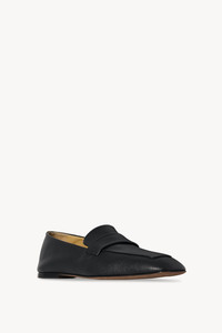 Minimal loafer in grained calfskin leather with squared toe, stitched strap, and leather sole. More information - 0.03 in. heel - 100% Calfskin Leather - Leather sole - Made in Italy - Style: F1659L59BLK