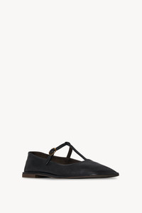 Square T-Strap Flat in Leather