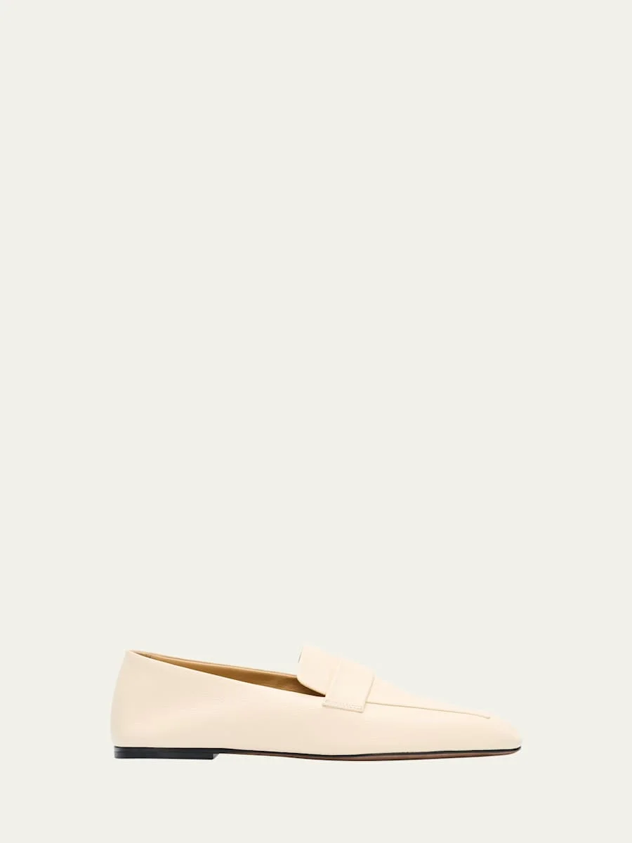 THE ROW soft calf leather loafers Flat heel Square apron toe Notched vamp with strap Slipon style Leather outsole Lining: Goat leather Made in Italy