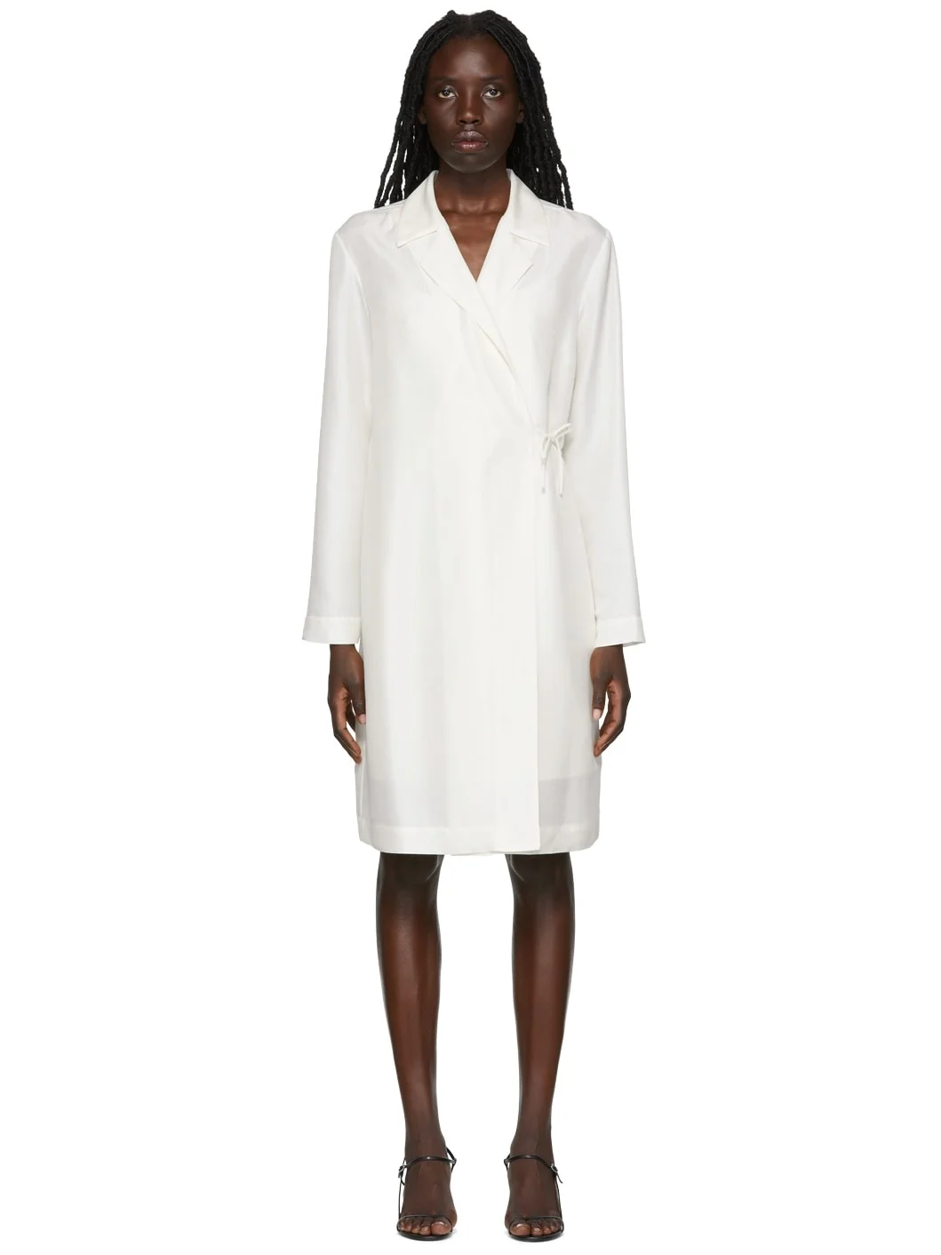 Plain-woven silk coat. · Notched lapel collar · Self-tie closure at open front Available exclusively at SSENSE. Supplier color: Ivory 100% silk. Made in Italy 222359F059006