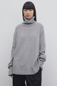 The Row Essentials turtleneck sweater in midweight cashmere and wool knit with ribbed neckline, cuffs and hem.More information - - Signature stitching along the back - - 65% wool, 35% cashmere - - Made in Italy - - Style: 5583Y184GYM