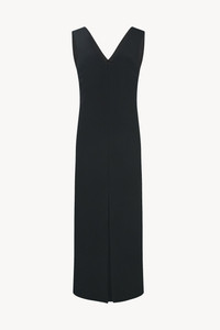 Ankle-length sleeveless dress in fluid silk crepe with slightly fitted silhouette, center front hem slit, and concealed back zip closure with hook & eye. More information - 100% Silk - Made in Italy - Style: 10528W3886BLK