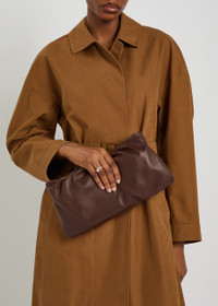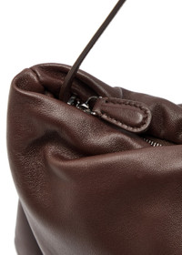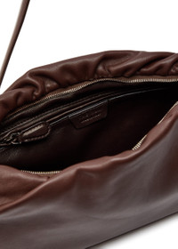 Info & Care The Row leather shoulder bag Detachable adjustable shoulder strap, gathered at top, debossed logo, internal zip-fastening pocket, fully lined;; Zip fastening across top Size & Fit Width: 13.5 inches/ 34.5cm Height: 7.5 inches/ 19cm Depth: 1 inch/ 2.5cm Min. shoulder strap drop: 7.5 inches/ 19cm Max. shoulder strap drop: 10.5 inches/ 26.5cm
