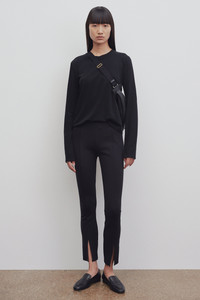 The Row Essentials legging in year-round stretch scuba nylon with seamed elastic waistband and vertical slits at front hem.More information - - 87% Polyamide, 13% Elastane - - Made in U.S. - - Style: 3448K106BLK