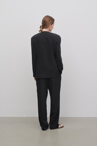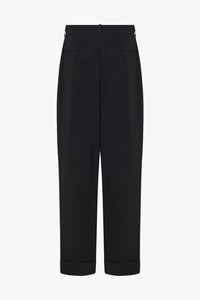 Menswear-inspired tailored pant in lightweight viscose cady with pressed front crease, cuffed hem, and back besom pockets. More information - 64% Viscose, 33% Acetate, 3% Elastane - Made in Italy - Style: 7936W730BLK