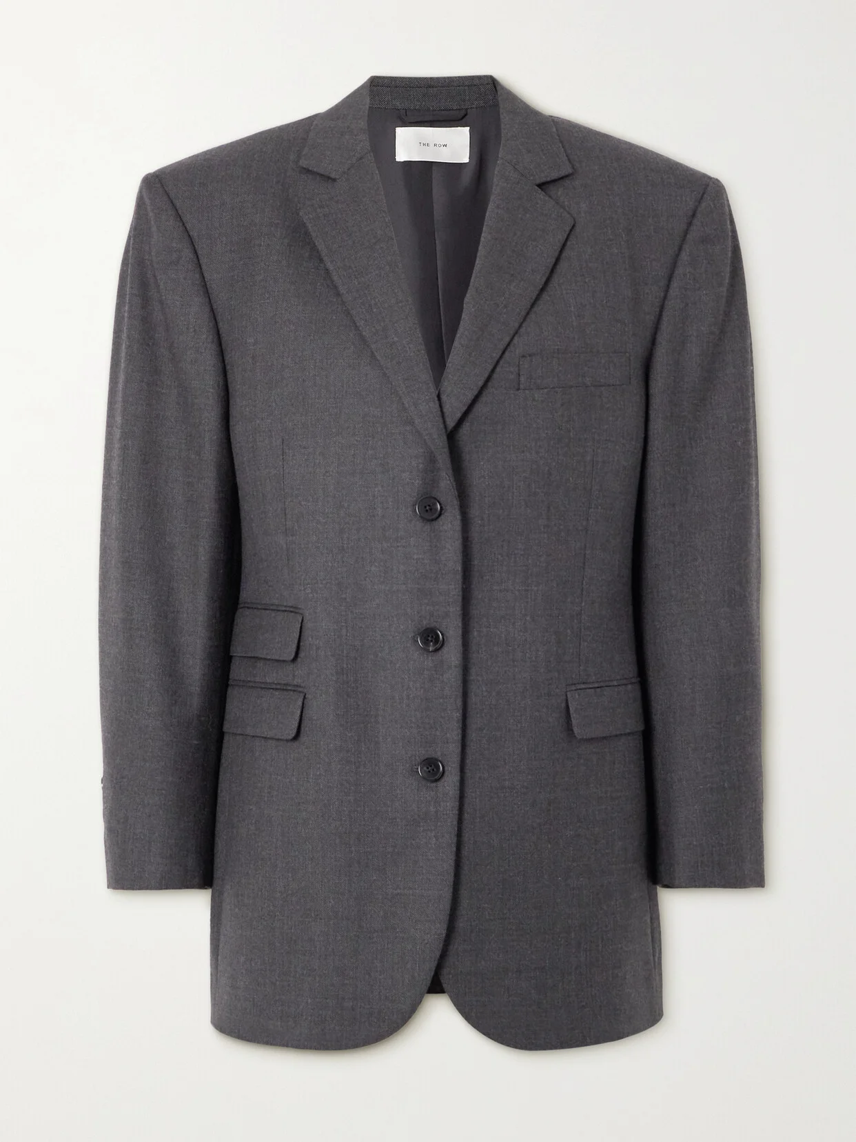 This dark-gray double-breasted blazer by The Row - aptly named after London's famous Savile Row - was seen on the Fall '23 runway. It's been expertly crafted in Italy from wool-twill with wide, padded shoulders and is lined in silk-crepe for a smooth drape. Team it with the matching pants to tap into the show's styling.