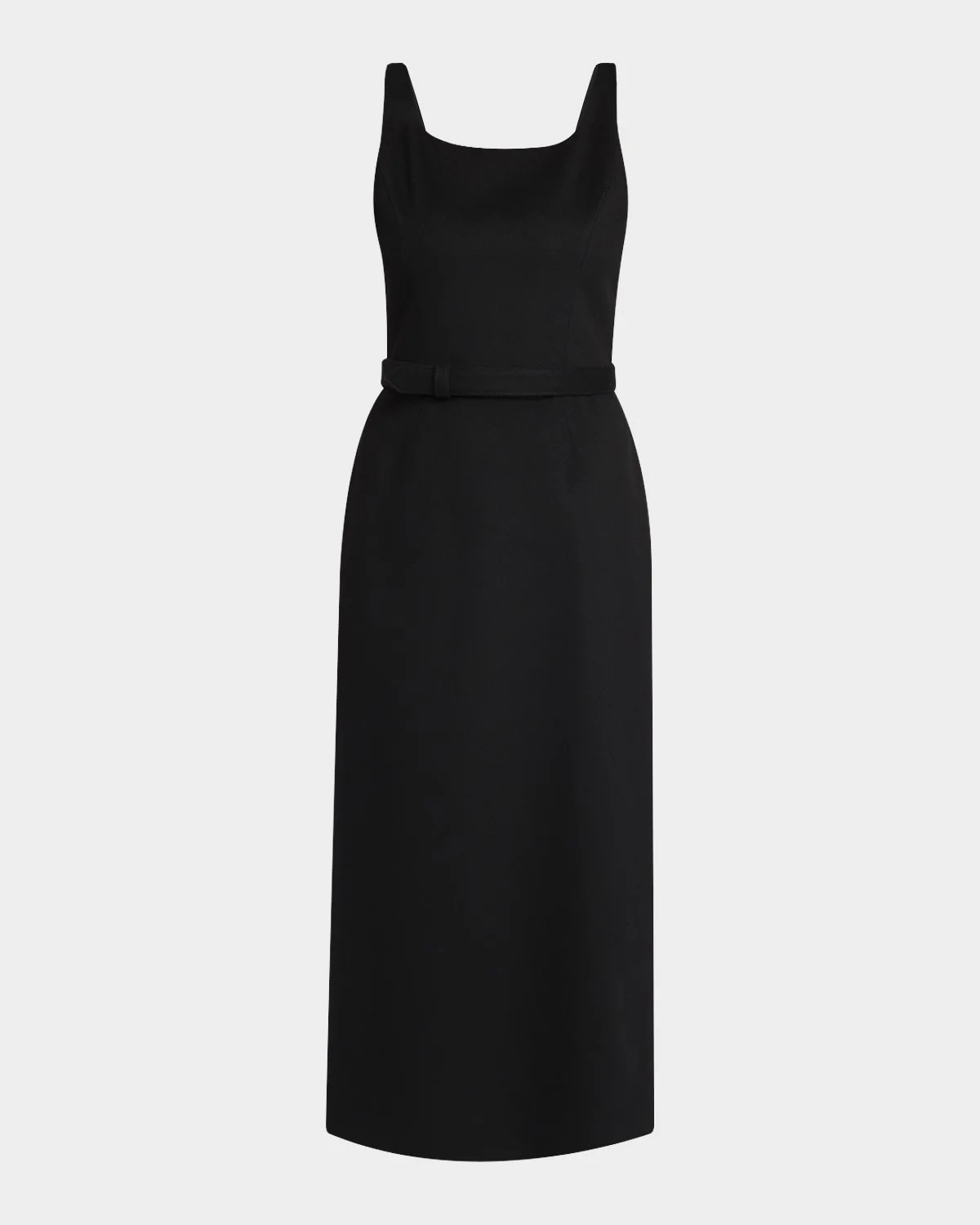 THE ROW "Vadira" dress is crafted of a brushed wool and is cinched at the waist with a self belt Scoop neckline Sleeveless Belted waist Sheath silhouette Hem falls below the knee Walking vent back Invisible side zip Wool Lining: Silk Made in Italy