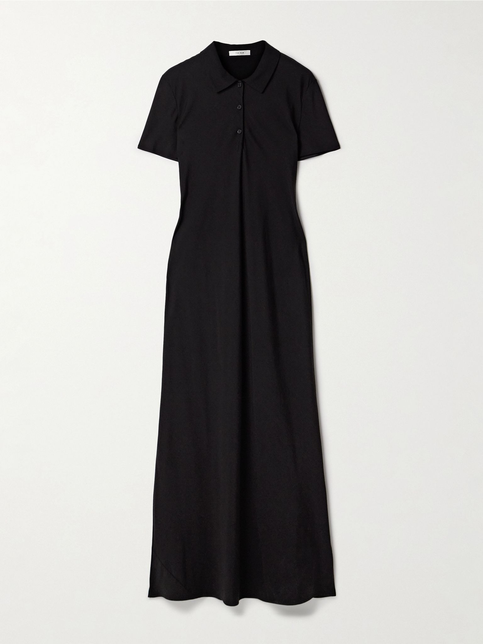 Valenit cotton and silk-blend jersey maxi shirt dress Black