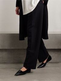 The Row's 'Viv' ballet flats are defined by their layered vamps that resemble a sleek cutout and tongue. They're crafted from smooth, glossed-leather and have pointed toes. If you're a fan of the style but looking for a bit more lift, check out the pumps version in our edit. Size & Fit - Fits true to size, take your normal size - Italian sizing Details & Care - Slight heel - Black glossed-leather (Calf) - Slip on