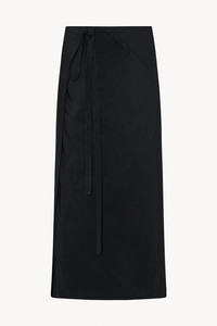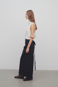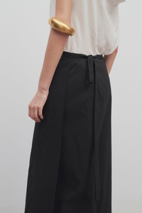 Ankle-length apron skirt in technical poly cotton with straight silhouette and long waist-wrapped ties. More information - 57% Cotton, 43% Polyester - Made in Italy - Style: 8166W3083BLK