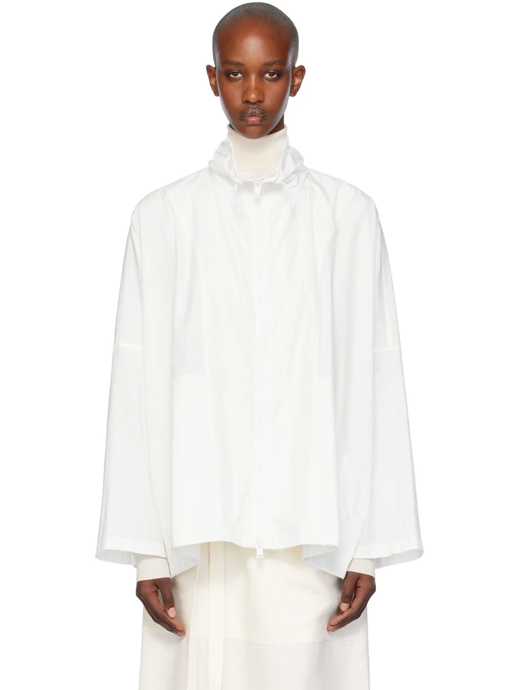 Recycled polyester taffeta jacket. · Paneled construction · Bungee-style drawstring at stand collar and hem · Two-way zip closure · Zip pockets Supplier color: White 100% recycled polyester. Made in Italy 242359F063007