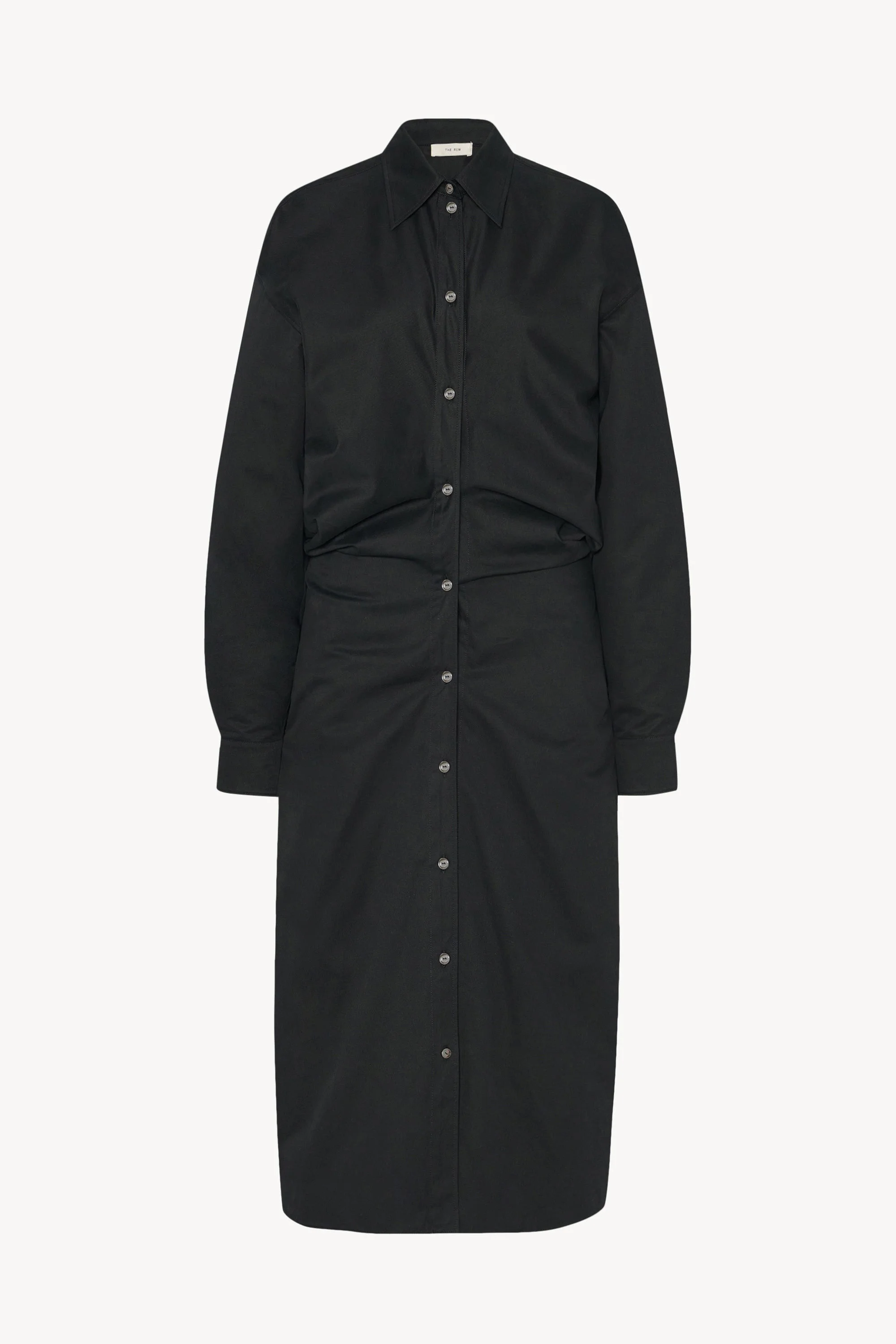 Calf-length shirtdress in cotton and cashmere gabardine with fitted silhouette, slight shirring at waist, and exposed front button placket. More information - 95% Cotton, 5% Cashmere - Made in Italy - Style: 10254W3670BLK