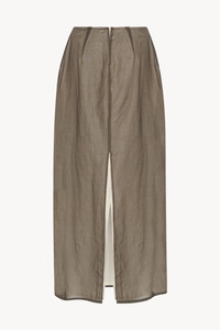 Mid-rise floor-length skirt in gauzy cotton organza with center back slit, contrast lining, and center back zip closure. More information - 100% Cotton - Lined in 100% Silk - Made in Italy - Style: 9075W3927BRO