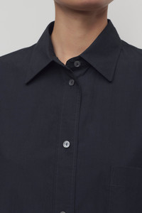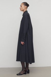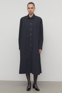 Calf-length shirtdress in sanded cotton poplin with A-line silhouette, side seam pockets, and exposed front button placket. More information - 100% Cotton - Made in Italy - Style: 10256W4075DRN