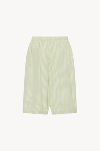 Mid-rise pajama short in Japanese cotton poplin with gathered elastic waistband, side seam pockets, and above-the knee length. More information - 100% Cotton - Lined in 100% Silk - Made in Italy - Style: 9078W3841GRN