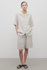 Mid-rise pajama short in fluid striped silk with gathered elastic waistband, side seam pockets, and above-the-knee length. More information - 100% Silk - Lined in 100% Silk - Made in Italy - Style: 9078W3844WWG