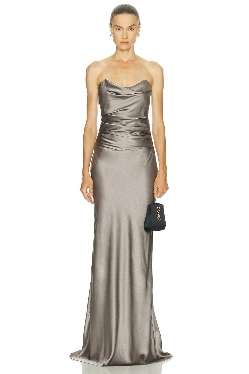 Details - 100% silk - Dry clean only - Fully lined - Hidden side zipper closure - Boned design at bodice - Satin fabric - Made in China - Our Style No. TSEX-WD130 - Manufacturer Style No. TS9170B