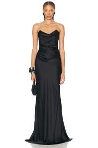 Details - Self & Lining: 100% silk - Made in China - Dry clean only - Fully lined - Hidden side zipper closure - Boned at bodice - Satin fabric - Our Style No. TSEX-WD109 - Manufacturer Style No. TS-9170b