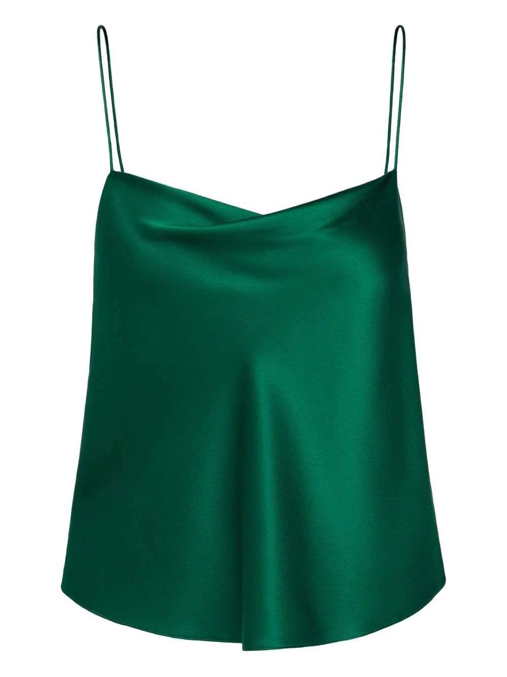 cowl-neck satin top Highlights - Green - Satin fabric - Cowl neck - Spaghetti straps - Straight hemline Imported Composition Silk 100% Washing instructions Dry Clean Only