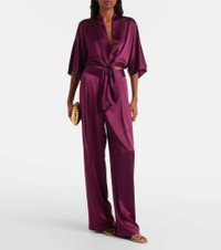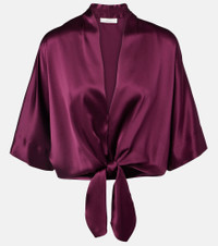 Indulge in elegant staples to wear again and again, like this The Sei top, cut from luminous silk charmeuse to a relaxed, cropped silhouette with a self-tie detail at the front. Product Details - Material: 100% silk - Care instructions: dry clean - Made in China - Designer color name: Merlot - Item color: burgundy - Closure: snap-buttoned front - Item number: P01111874 Size & Fit - True to size - Loose fit, comes with belt - Non-stretchy fabric - Cropped - The model seen in the picture is 178cm-5'10" and wearing a size US 4