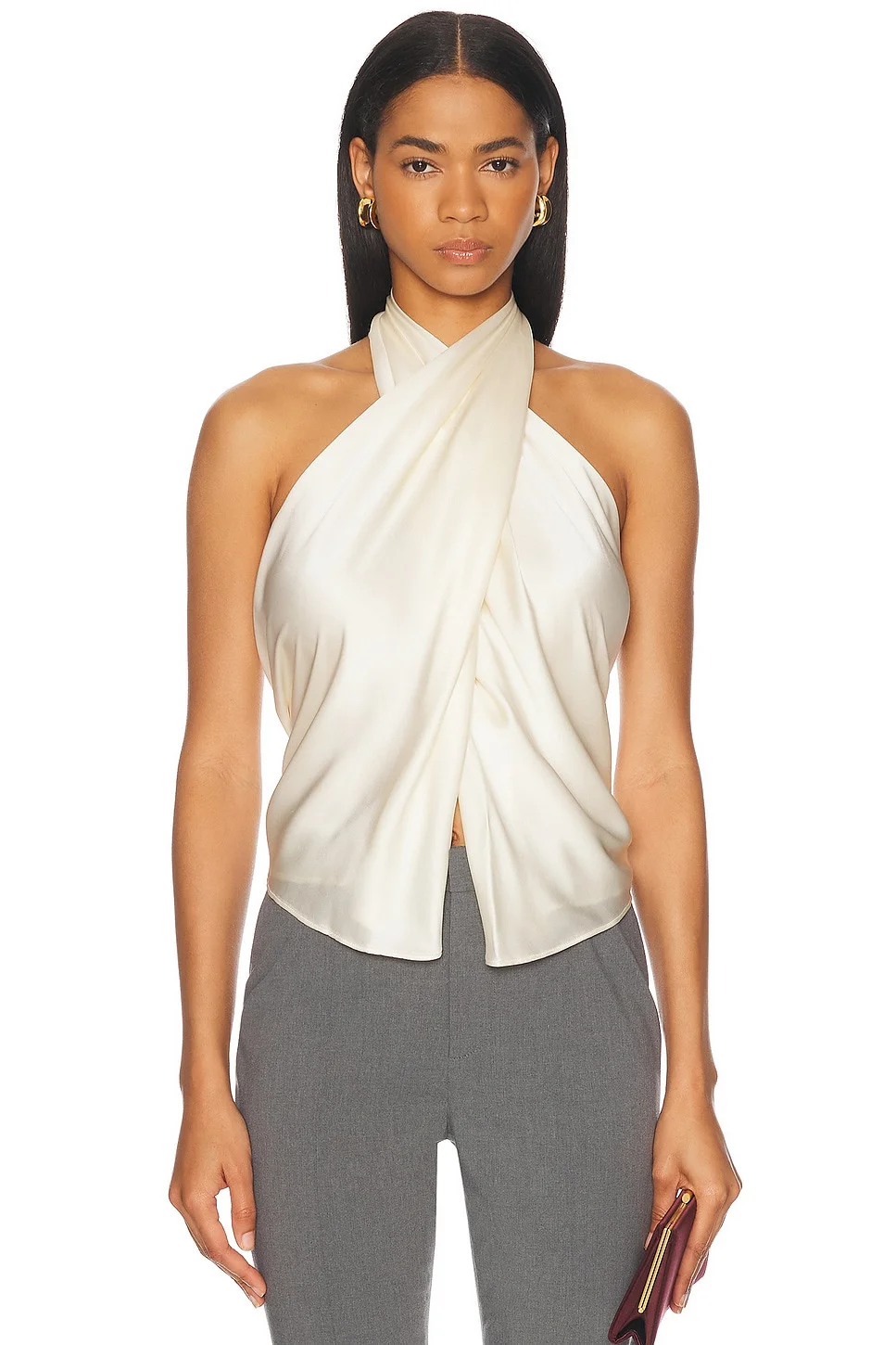 Details - Self & Lining; 100% silk - Made in China - Dry clean only - Halterneck button loop closure - Open back - Satin fabric - Our Style No. TSEX-WS83 - Manufacturer Style No. TS2175