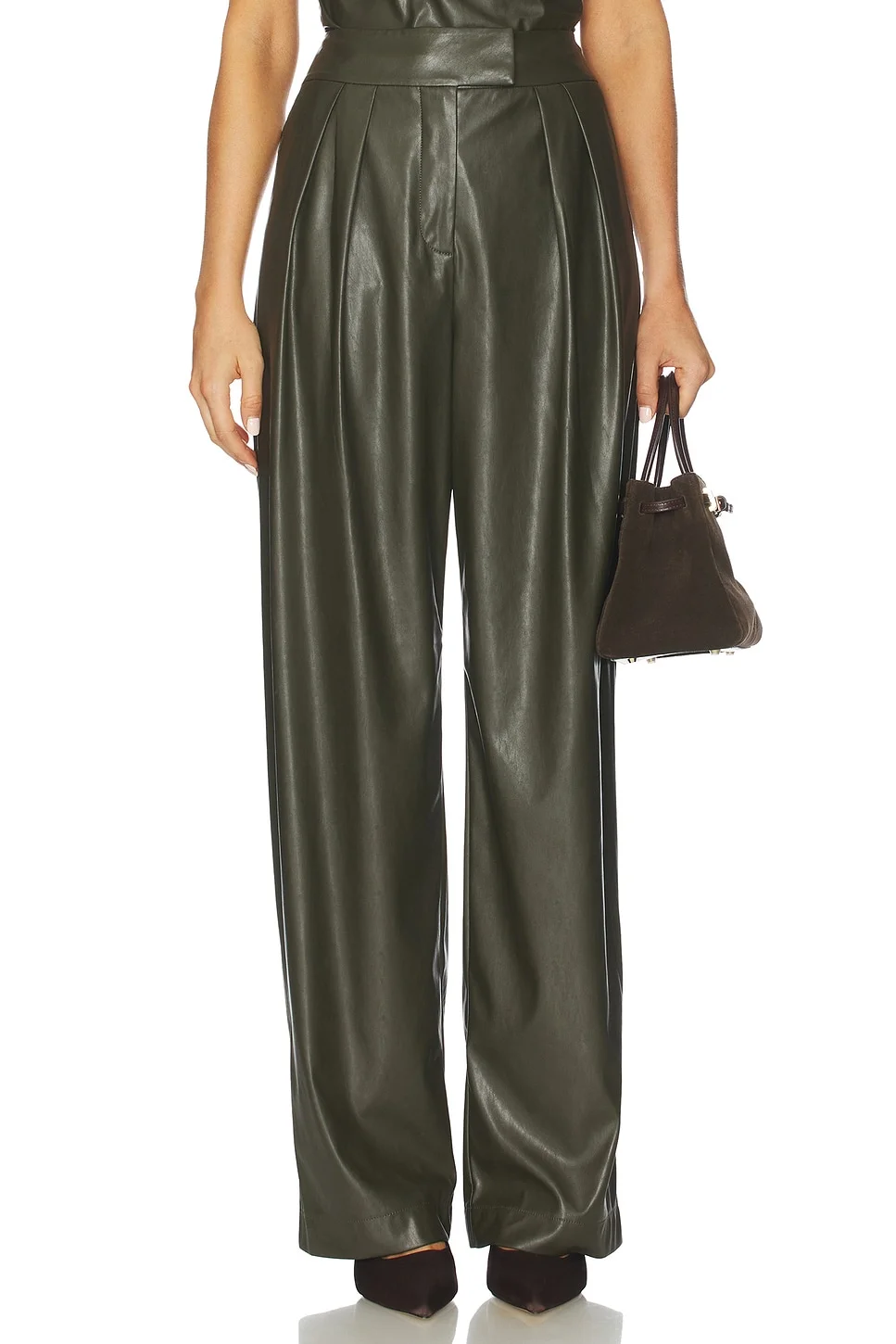 - 50% polyester 50% polyurethane - Dry clean only - Zip fly with hook and bar clasp closure - Side slant pockets - Faux leather fabric with front pleated detail - Item not sold as a set.20" at the leg opening - Revolve Style No. TSEI-WP48 - Manufacturer Style No. TS6013B