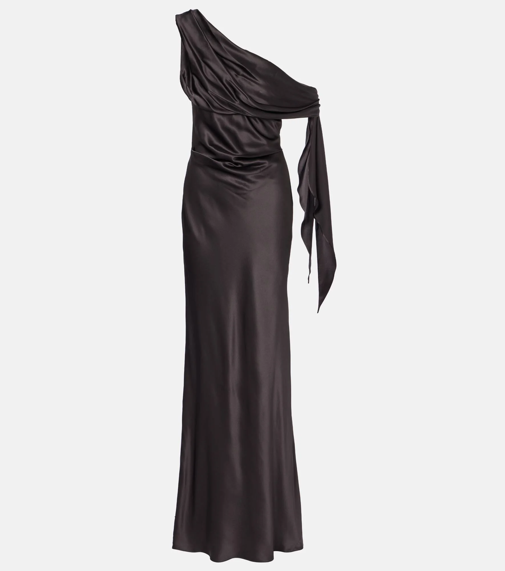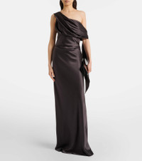 Draped one-shoulder silk satin gown