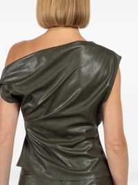draped one-shoulder top Highlights - Army green - One-shoulder neckline - Draped design - Leather effect Imported Composition Polyester 50%, Polyurethane 50% Washing instructions Read Manufacturer Guidelines