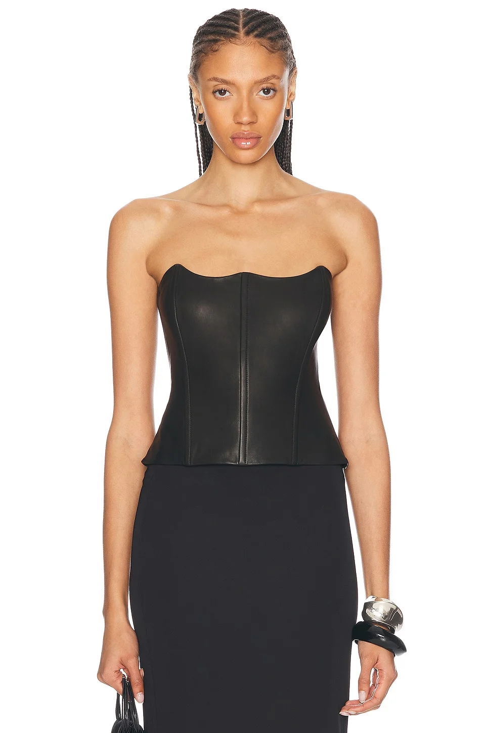 Details - Self: 100% lambskin - Lining: 90% viscose, 10% polyester - Made in India - Professional leather cleaning only - Exposed back zipper closure - Curved design at neckline - Bustier styling - Genuine leather - Our Style No. TSEX-WS79 - Manufacturer Style No. TS-2040b