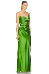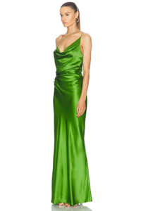 Details - Self & Lining: 100% silk - Made in China - Dry clean only - Fully lined - Hidden side zipper closure - One-shoulder styling and cowl-neckline - Satin fabric - Our Style No. TSEX-WD102 - Manufacturer Style No. TS-9154b