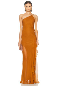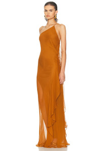 Details - Self & Lining: 100% silk - Dry clean only - Fully lined - Pull-on styling - One shoulder styling - Tiered ruffle detailing - Midweight chiffon fabric - Made in US - Our Style No. TSEX-WD126 - Manufacturer Style No. TS9189