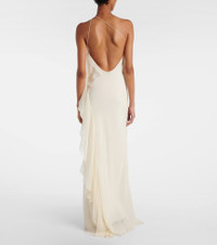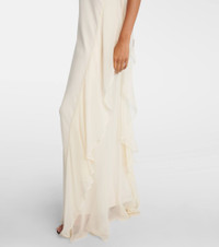 Based in LA, The Sei creates pieces that inspire, empower, and never cease to impress. This gown is made from pure silk and cut into an elegant one-shoulder silhouette with ruffled details. Product Details - Material: 100% silk - Care instructions: dry clean - Made in the USA - Designer color name: Cream - Item color: white - Lining: 100% silk - Fully lined - Item number: P01072727 Size & Fit - True to size - Low back - Cinched waist - Non-stretchy fabric - The model seen in the picture is 178cm-5'10" and wearing a size US 4