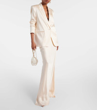 Product Details - Material: 100% silk - Care instructions: dry clean - Made in China - Designer color name: Bisque - Pockets: breast pocket, jetted - Closure: single-breasted (one button) - Lining: 100% silk - Item number: P00933211 Size & Fit - True to size - Shoulder pad inserts - Straight fit - Non-stretchy fabric - Falls below the hip - The model seen in the picture is 178cm-5'10" and wearing a size US 4