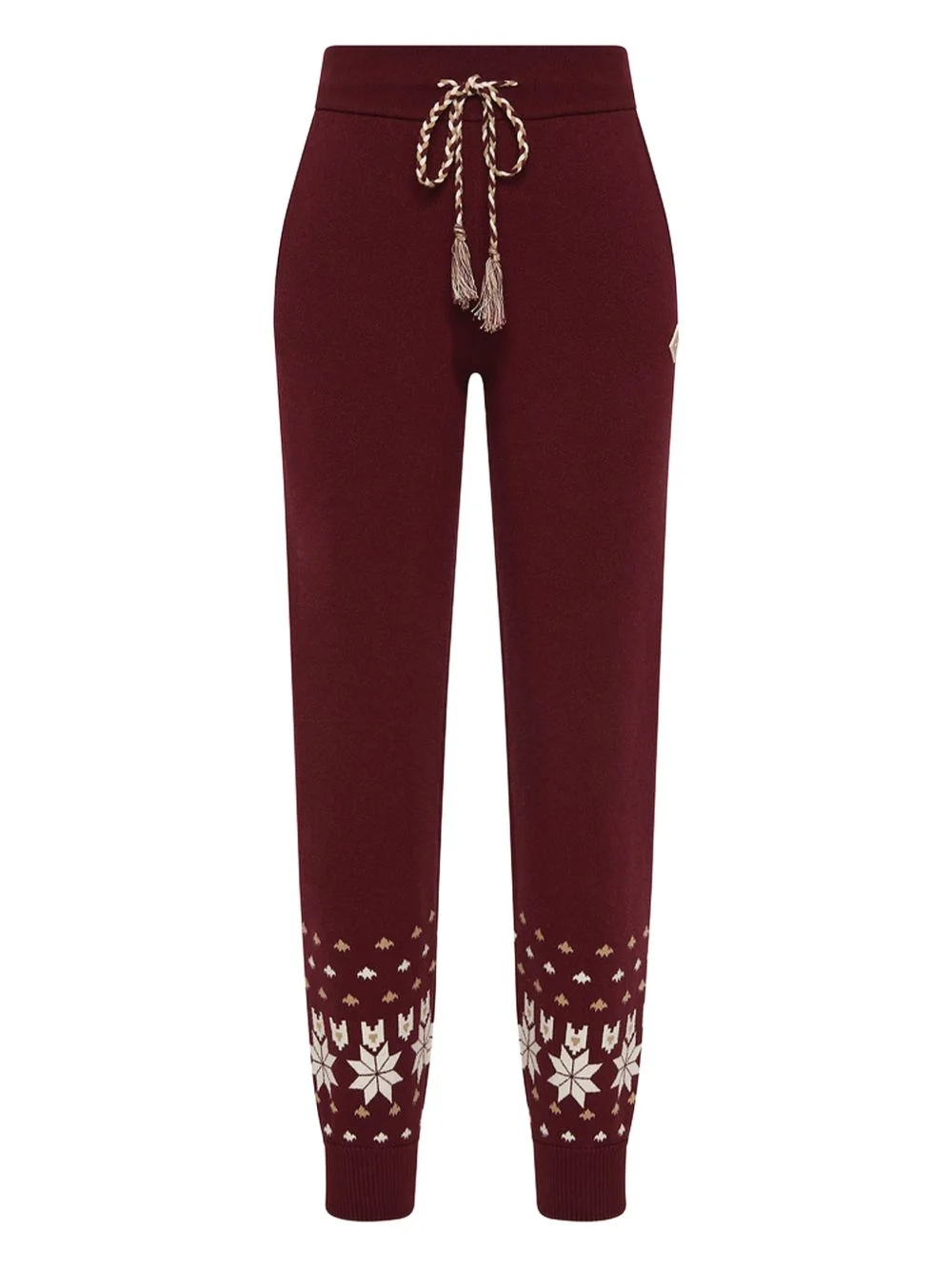 Le Ski Jojo snowflake-pattern track pants Highlights - Burgundy - Snowflake pattern - Drawstring fastening - Side seam pockets - Tassel detail Imported Composition Organic Cotton 85%, Nylon 13%, Elastane 2% Washing instructions Machine Wash