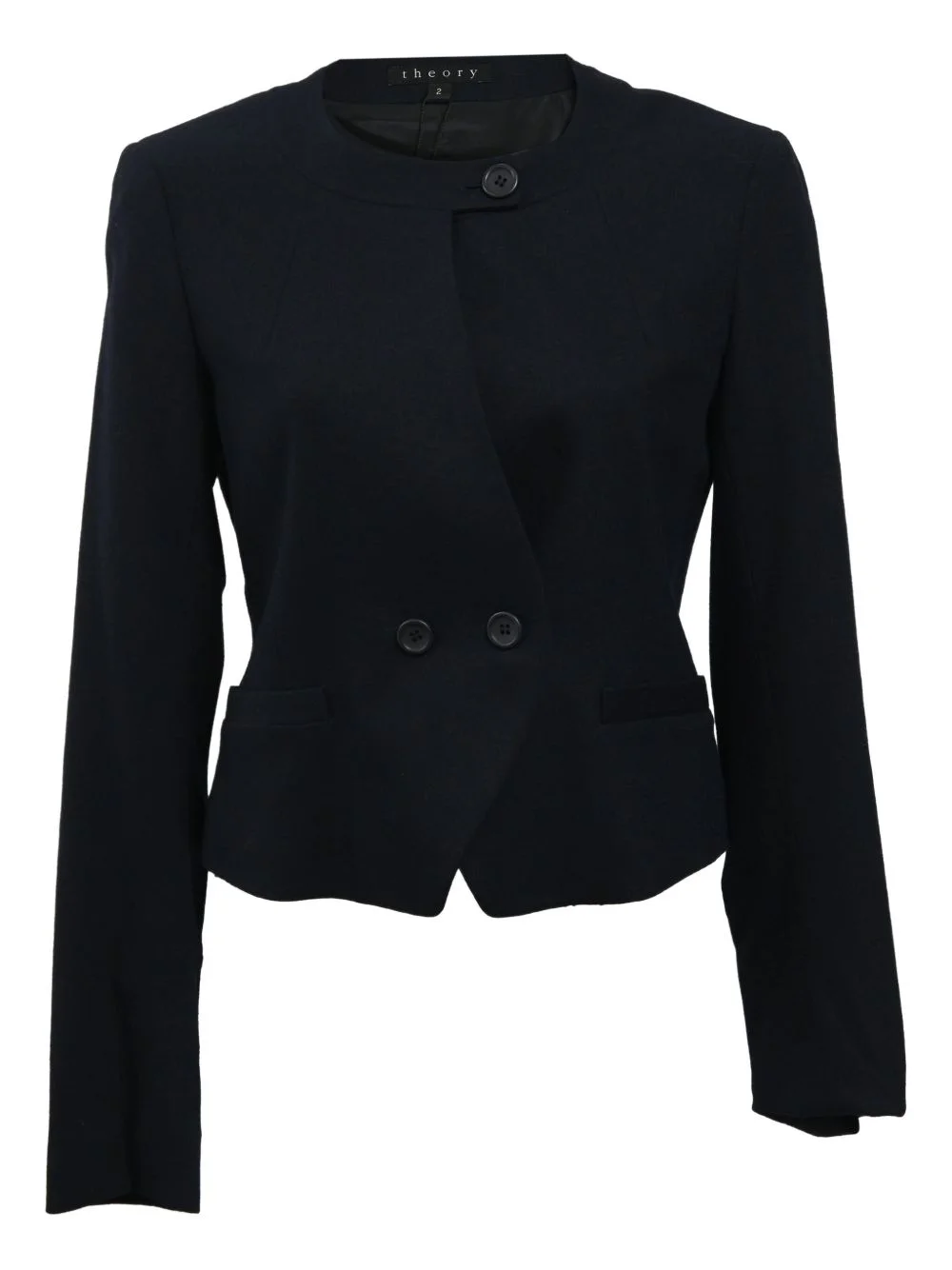 490mm double-breasted blazer Highlights - Navy blue - Wool - Double-breasted - Button fastening - Condition: excellent. this previously owned item is in near-perfect condition with no signs of damage or use. Imported Composition Wool 100% Washing instructions Read Manufacturer Guidelines
