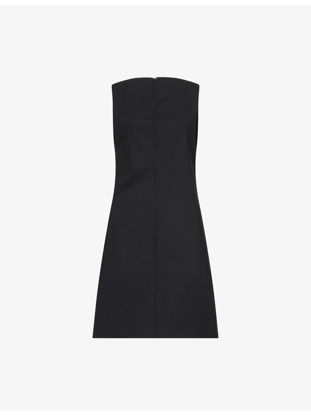 PRODUCT DETAILS - Theory wool mini dress - 96% wool, 4% elastane; lining 94% polyester, 6% polyurethane - Concealed hook-and-eye and zip fastening at back - Tailored fit, high boat neck, sleeveless, exposed stitched seams, fully lined - Dry clean - True to size - Size UK 8: length 34in / 86.3cm - Model is 5ft 10in/1.78m and wears a size UK 8 Ref: R04560740