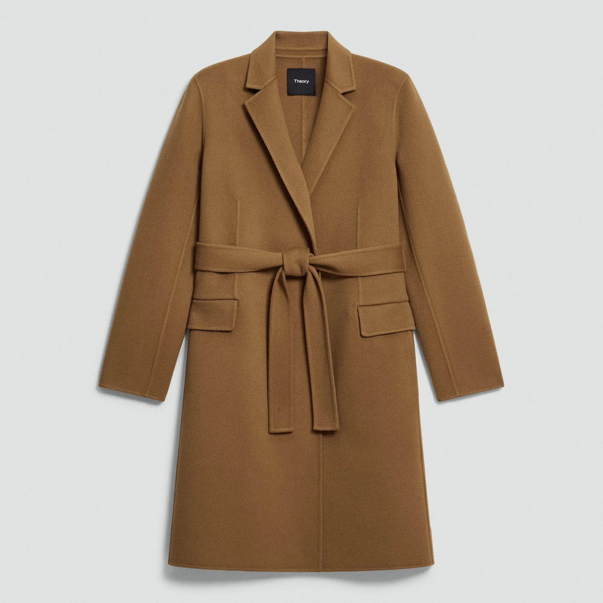 Please enter your email below to be notified when this item is in stock A timeless outer layer, this coat is tailored with notched lapels, slip pockets, and a self-tie belt that defines the waist. Designed to be worn open or cinched, it has a clean, versatile silhouette that transitions seamlessly from day to night. Crafted from a soft wool-cashmere blend, it offers warmth with a luxurious feel. Double-face fabrics are created through a special weaving process that joins two layers of a material. Due to their unique construction, double-faced garments are seamed together with special techniques that result in a clean, refined finish. This elevated process—along with the fabric's superior warmth—allows the garments to be unlined. This fabric is made in Italy of both pre- and post-consumer certified responsibly sourced wool and certified recycled cashmere as well as virgin fibers. Style #: P0901416 Please enter your email below to be notified when this item is in stock Fit True to size, choose your normal size Relaxed fit, long sleeves Full length Model is 5’11” and wearing a US size S Materials & Care Composition 90% wool 10% cashmere Care Do not wash. Do not bleach. Do not tumble dry. Cool iron if needed. Dry clean with any solvent except trichloroethylene. Imported