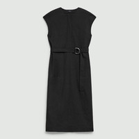 Please enter your email below to be notified when this item is in stock Defined with a belted waist to accentuate its relaxed fit, this midi dress features a crew neckline, side pockets, and hidden button-front closures. Crafted from our signature stretch Good Linen fabric, this sleeveless style is a warm-weather everyday favorite with unique quilted detailing. Theory for Good Woven by the Marini & Cecconi Mill in Prato, Italy, Good Linen is our signature stretch linen fabric, made up of three fibers— flax sourced from France, viscose made from repurposed cotton fiber waste, and certified recycled elastane for stretch. Learn more about our Good Linen. Style #: P0303614 Please enter your email below to be notified when this item is in stock Fit True to size, choose your normal size Relaxed fit, sleeveless Below-the-knee length Model is 5’11” and wearing a US size 2 Materials & Care Composition 62% linen 36% viscose 2% elastane Care Do not wash. Do not bleach. Do not tumble dry. Cool iron if needed. Dry clean with any solvent except trichloroethylene. Imported