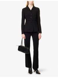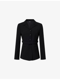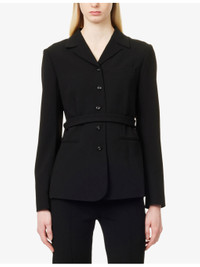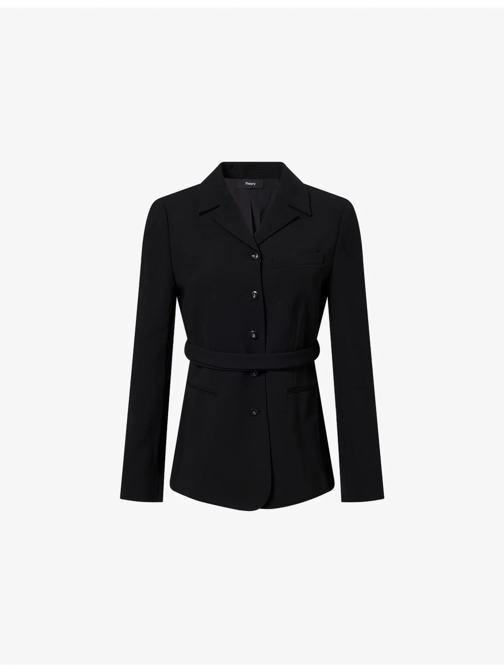 PRODUCT DETAILS - Theory woven blazer - 70% triacetate, 30% polyester - Exposed button fastening at front - Regular fit, notched lapels, long sleeves, welt pocket at chest, two welt pockets at front, detachable self-tie belt at waist, fully lined - Dry clean - True to size - Size UK 8: length 26in / 66cm - Model is 5ft 10in/1.78m and wears a size UK 8 - Midweight, non-stretch Ref: R04560742