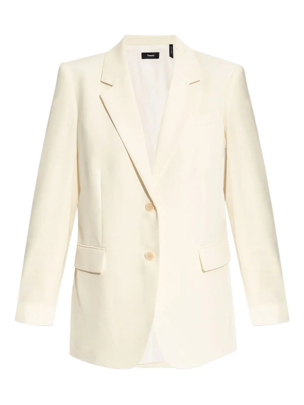 single-breasted blazer Highlights - Cream - Notched lapel - Button fastening - Long sleeves - Flap pockets Imported Composition Outer: Triacetate 77%, Polyester 23% Lining: Polyester 100% SIZE & FIT FittingInformation Designed to be unstructured, offering a loose fit throughout The internal shoulder pads offer a structured shape Made from a midweight non-stretch fabric Washing instructions Read Manufacturer Guidelines