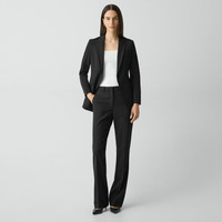 Our Etiennette blazer goes from day to night in a strong, feminine silhouette featuring peak lapels, a cutaway front, and flattering nipped-in waist. Fully lined in cupro made with waste cotton fibers, this power jacket can be styled as a suit or dressed down with a T-shirt and jeans. Theory for Good We are committed to making a positive impact on the people who wear our clothes, our industry, and our planet, beginning with our Good fabrics. Consciously manufactured from start to finish, our Good Wool is crafted with premium merino wool. It’s sourced from farms in Australia, including the Beaufront farm in Tasmania and woven by the Tollegno 1900 mill in Biella, Italy. Learn more about our Good Wool. Style #: H0101113 Fit True to size, choose your normal size Fitted through the waist, bracelet length sleeves Below hip length Model is 5’11” and wearing a US size 2 Materials & Care Composition 96% wool 4% elastane Care Do not wash. Do not bleach. Do not tumble dry. Cool iron if needed. Dry clean with any solvent except trichloroethylene. Imported