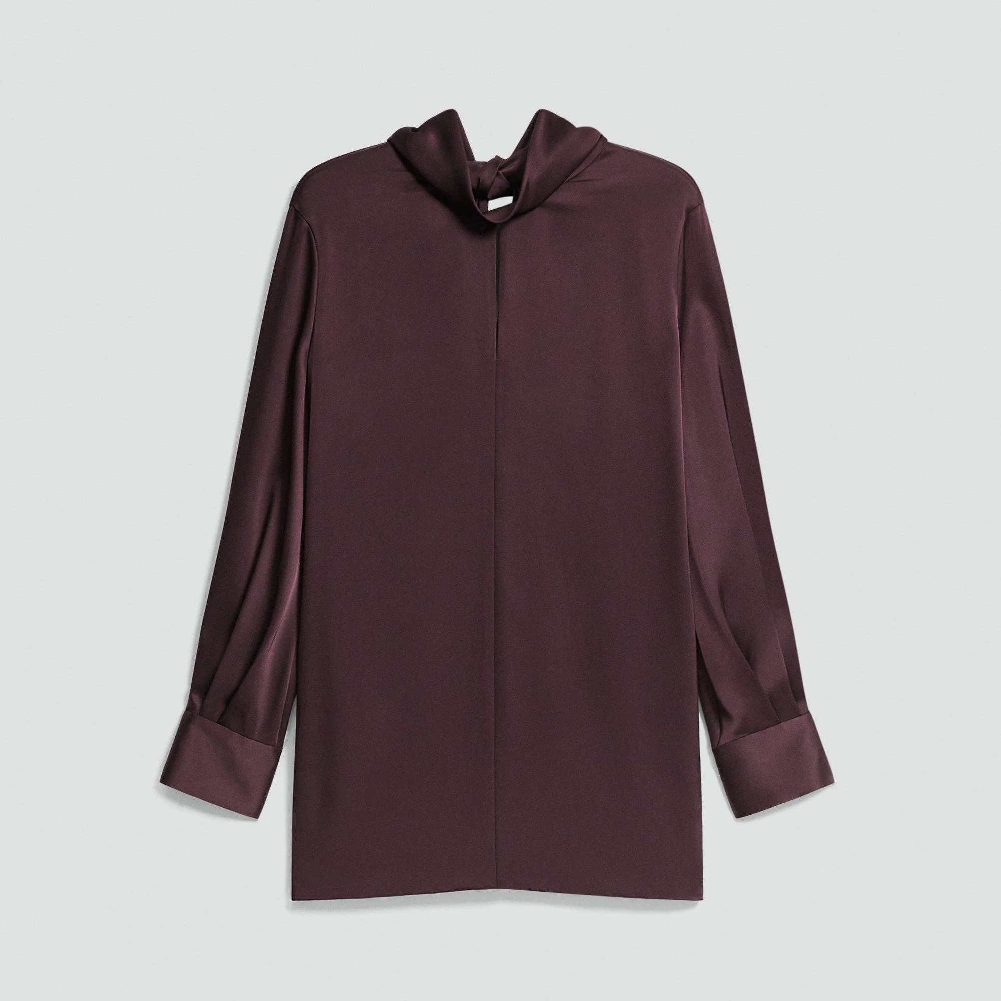 Please enter your email below to be notified when this item is in stock Cut for a straight silhouette, this dress is distinguished by softly gathered blouson sleeves and a refined keyhole neckline. Its minimal lines keep the look pared back, offering a clean canvas for seasonal layering or stand-alone wear. It’s crafted in a drapey Japanese double satin that’s woven with triacetate, a fabric made from acetic acid and wood pulp sourced from certified responsibly managed forests. Style #: P1009602 Please enter your email below to be notified when this item is in stock Fit True to size, choose your normal size Relaxed fit, long sleeves Short length Model is 5’11” and wearing a US size S Materials & Care Composition 87% triacetate 13% polyester Care Do not wash. Do not bleach. Do not tumble dry. Cool iron with press cloth if needed. Dry clean with any solvent except trichloroethylene. Imported