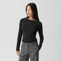 Please enter your email below to be notified when this item is in stock This fitted top is shaped with a wide boat neckline, slim sleeves, and a straight hem. It works as a versatile base layer under polished tailoring or on its own with denim. Stretch rib gives it a close fit that moves comfortably and holds its shape. It’s crafted using certified recycled polyester made from waste and a modal-blend made from wood pulp sourced from certified responsibly managed forests. Style #: P1029510 Please enter your email below to be notified when this item is in stock Fit True to size, choose your normal size Slim fit, long sleeves Short length Model is 5’11” and wearing a US size S Materials & Care Composition 64% modal 28% recycled polyester 8% spandex Care Machine wash cold, gentle cycle, with similar colors. Do not bleach. Do not tumble dry, lay flat to dry in shade. Cool iron if needed. Do not dry clean. Imported