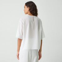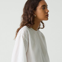 Please enter your email below to be notified when this item is in stock Designed for a looser fit, this crewneck tee features elbow-length sleeves and a hook-and-eye closure in the back. It’s crafted of a cotton semi-sheer shirting fabric with a tonal stripe pattern that plays with transparency, perfect for the warmer months of the year. Style #: P0404508 Please enter your email below to be notified when this item is in stock Fit True to size, choose your normal size Loose fit, elbow-length sleeves Hip length Model is 5’11” and wearing a US size S Materials & Care Composition 100% cotton Care Hand wash cold. Do not bleach. Do not tumble dry, hang to dry in shade. Cool iron if needed. Dry clean with any solvent except trichloroethylene. Imported