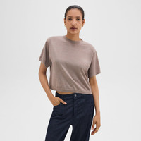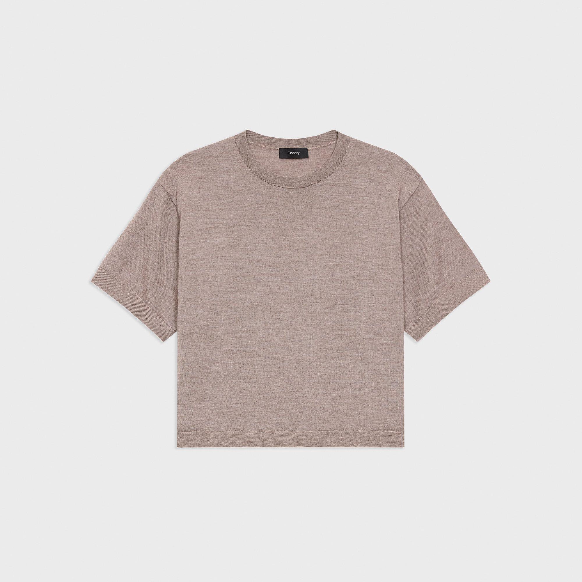 Decidedly oversized and slightly cropped, our fresh approach to the classic tee is designed with a crew neckline and a pair of short sleeves. It’s crafted in a fine-gauge merino wool from Australia that’s spun and knit in Italy. We are committed to making a positive impact on the people who wear our clothes, our industry, and our planet, beginning with our Good fabrics. This single-origin sourced wool is fully traceable to Congi Farm, located in Woolbrook, New South Wales, Australia. This luxury yarn is produced by Botto Giuseppe, a forward-thinking mill and leader in sustainability, located in Biella, Italy. Style #: O0711714 Fit Designed for an oversized fit, choose your normal size For a more tailored fit, choose one size smaller than normal Boxy fit, short sleeves Hip length Model is 5’11” and wearing a US size S Materials & Care Composition 100% wool; exclusive of elastic Care Hand wash cold. Do not bleach. Lay flat to dry in shade, do not tumble dry. Cool iron if needed. Dry clean with any solvent except trichloroethylene. Imported